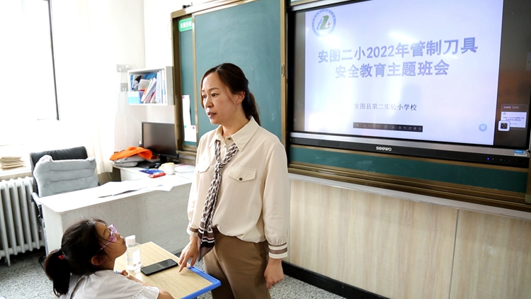 为净化校园治安环境,维护学校正常教学秩序,保障广大师生人身安全,6月24日,安图县第二实验小学校各班级召开了拒绝管制刀具主题班会。