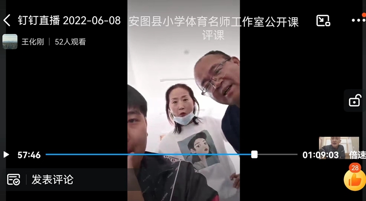 各校体育教师在线进行观摩,课后又齐聚体育集体备课群进行交流研讨,分别阐述了对本节课各个环节的设计意图和上完课后的体会。县教师进修学校体育教研员孙*则针对授课教师在课堂教学中各个层面,如具体的教学设计、教学方法、课堂组织等,进行了细致点评,并提出了指导性建议。最后,县小学体育名师工作室主持人王化刚对本次活动课进行了总结。