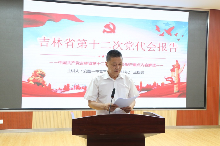 会上,王松元书记传达学习了省委书记景俊海同志《高举旗帜牢记嘱托绰厉奋发勇毅前行奋力谱写全面建设社会主义现代化新吉林精彩篇章》的报告并进行了认真解读;全校党员干部教师们结合自身工作实际,撰写并交流了学习贯彻省第十二次党代会精神心得体会。