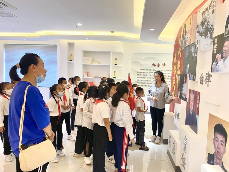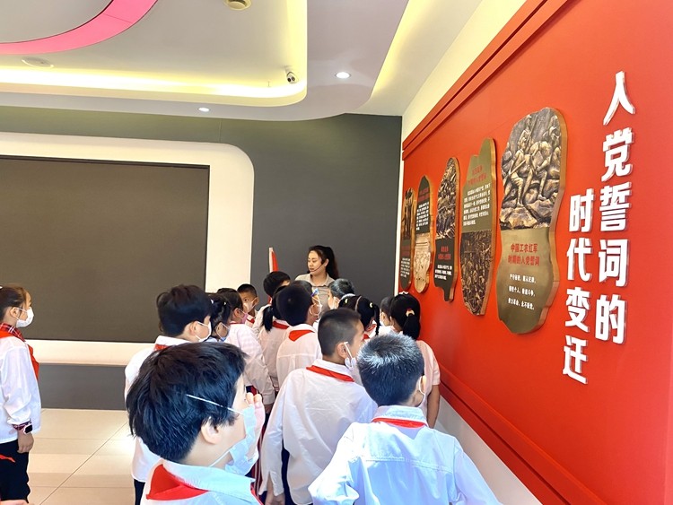 孩子们的到来,受到了非公党建中心专人的接待、引导和解说,参观中,随着讲解员的介绍,孩子们了解了习近平的诗词情缘及他的青春故事,知道了红船精神、井冈山精神等。看到历届党和国家领导人,孩子们随着讲解员一起喊出了他们的名字。一张张珍贵的老照片、一件件珍贵的历史文物,生动形象地再现了中国共产党从无到有、从新生到勃发的波澜壮阔历史;在“百年奋斗 红色安图”板块,知道了1909年安图建县的缘由,了解了不同时期安图的发展变化。通过图片直观地看到了目前安图县脱贫攻坚工作取得的成绩!在“时代先锋 致敬英雄”板块,孩子们认真聆听了抗洪英雄曹志宇、王岩松的事迹。孩子们深受感动,在初心树上写下了自己的心愿!举起右手一起呼出心声:准备着为共产主义事业而奋斗———时刻准备着!