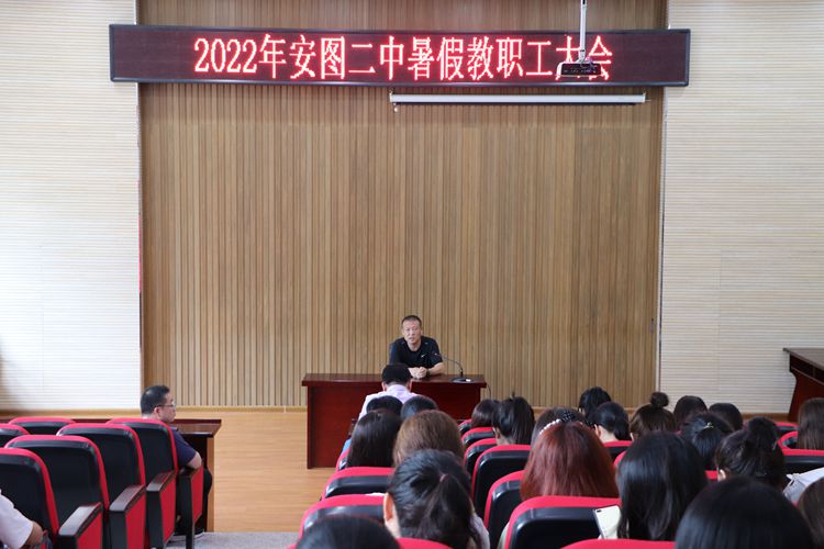2022年7月22日上午,安图县第二中学在大会议室召开了2021-2022学年度暑期教职工大会,全体教师参会。