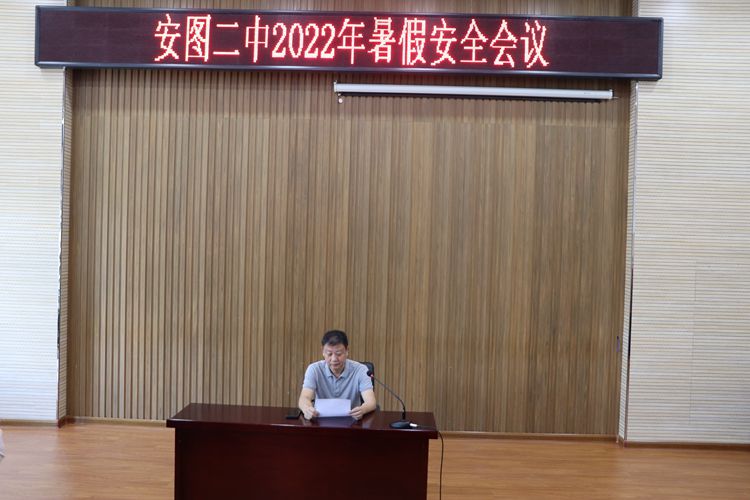 暑期临近,为进一步加强暑假期间学校安全稳定工作,预防各类安全事故发生,确保广大师生过上一个安全、文明、祥和、愉快而有意义的假期,安图县第二中学于7月20日上午召开关于做好2022年暑假期间学校安全工作会议,会议由安全处主任李瑞武主持,全体教师参会。