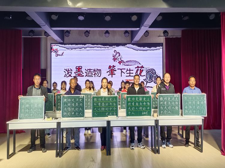字如人之衣冠,一手好的粉笔字是教师的基本素养。此次竞赛中要求教师在规定时间内写下“教师是历史上所有高尚而伟大人物的中介人”几个大字,比赛现场气氛紧张有序,老师们个个全神贯注,埋头认真书写,挥洒自如,用心雕琢每一笔每一画。书写风格有的刚劲有力;有的潇洒飘逸;有的大方得体;有的秀气隽美……一份份作品不仅展示出了教师们的书写才能,也体现了教师们过硬的教学基本功。