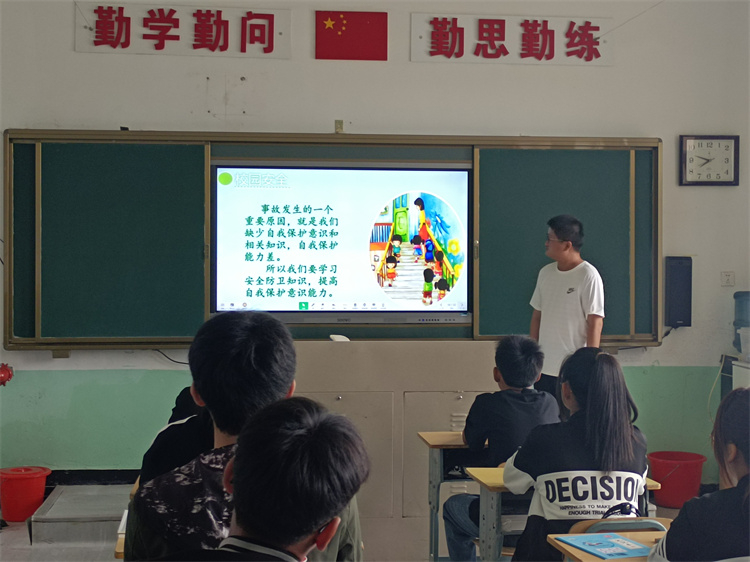 各班主任采用幻灯片、小视频等形式,对学生进行道路交通安全、校内活动安全、防火、防溺水、防校园欺凌等方面的安全教育,加强预防传染病相关知识的宣传,组织学生学习了疫情防护、“七步洗手法”等方面的健康知识”。班主任向学生展示日常生活中存在的安全问题,并及时让学生谈感受,让学生增强安全意识。