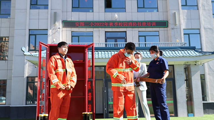 安图二小:开展学校微型消防站业务技能培训