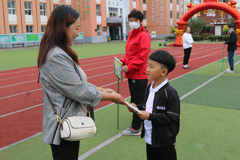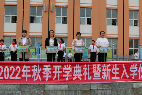 由于天气原因,活动以线上、线下方式同时开展。在活动现场,老师们列队欢迎走“励志门”入校的一年级新生和学生家长。邓传福校长在致辞中寄语新生,希望学生们在辅导员老师的带领下多思考、勤学习,并赠予学生代表书籍,鼓励学生励志读书。在24个班级,政教主任任淑红以线上的方式为新生进行《开学第一课》讲解,讲解交通安全、乘坐校车安全、食品安全等影响学生身体的因素。之后,全校800余名师生共同唱响延边州州庆主题曲《龙龙》,为州庆庆生。