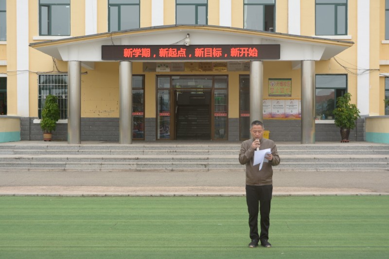 王校长首先上台致辞,他的讲话中,也提出了对于新学期的要求,并希望全体师生应从点点滴滴做起,一步一个脚印,脚踏实地朝着目标迈进。