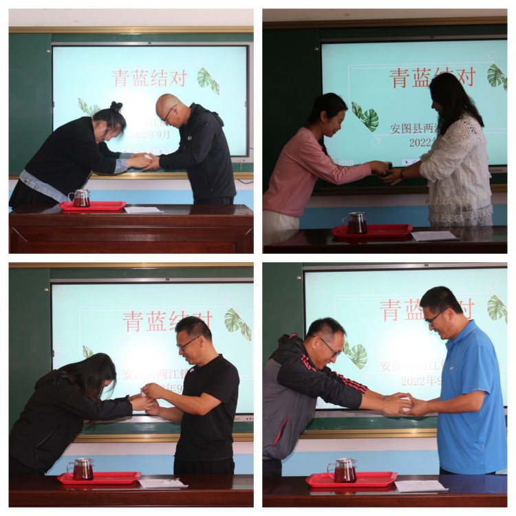 最后,副校长张金山对成功结对的师徒表示祝贺,并对骨干教师如何履行好“传帮带”责任以及青年教师如何在师傅的引领下快速的成长提出了具体的要求和期望。“青蓝结队”寓意青出于蓝而胜于蓝,他相信在骨干教师们的精神和行动的感召下,在新老教师的共同努力下,新老教师能在此次活动中实现“共赢”,促进两江镇中学教师的整体成长。