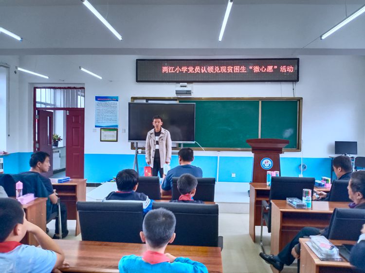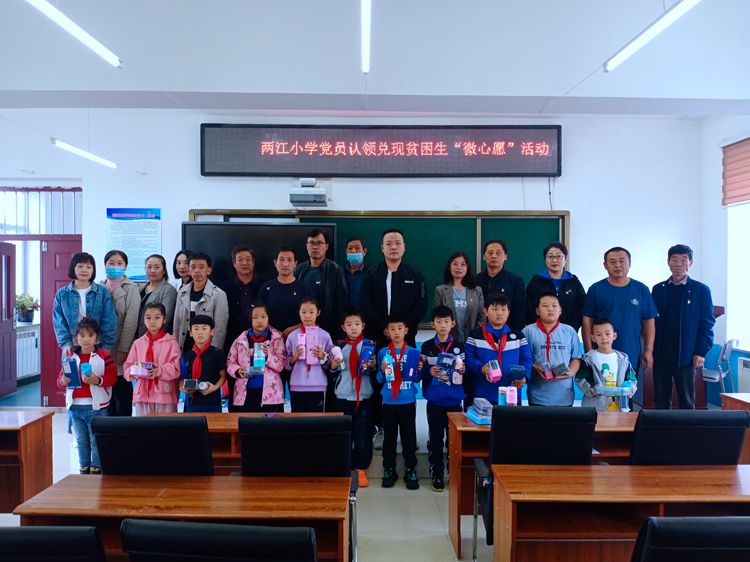 两江小学校党支部,根据教育局党办的工作要求进行了微心愿活动的开展。制定了微心愿活动方案,根据班主任和党员摸排,党支部18名党员自己为18名贫困学生准备了学习用品,帮助他们完成一个小心愿。