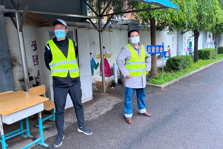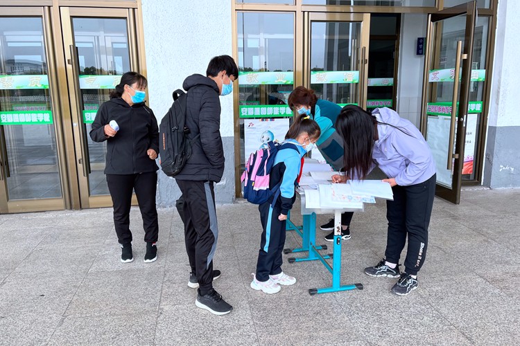 学校大门是校园防疫工作的初始之处,测温登记是详实记录的初始一笔。为有效保障全校师生健康安全,维持学生上学、放学时段的学校大门口治安、学生秩序、家长秩序、道路交通秩序,在朝鲜族学校政教处的统一安排下,20位教师以两人一组为单位,身着反光背心,按照早晨6:30---7:50,下午17:00--17:40的时间要求,每天准时进行护学岗工作。同时在教学楼前设置测温登记处,由27位教师以三人一组为单位开展清晨工作。