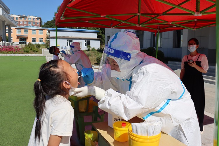 根据最新的核酸采样工作方案,全体在职教师与在校学生需要在所在学校进行核算采样工作。根据工作需要,朝鲜族学校党员教师、领导干部、青年教师充分发扬奉献精神,积极投入到核算采样工作中。在朝鲜族学校团委的统一调度下,体育组教师协同班主任负责学生队伍的纪律维持工作,教导处、音体美组教师负责核算的采样、收集工作。采样工作中,学生队伍与教师队伍按照防疫要求,人人佩戴口罩,两人之间间隔两米。采样工作结束后,学生在班主任老师的带领下,整齐走回班级。校医在核实名单后,将样本送至指定地点。