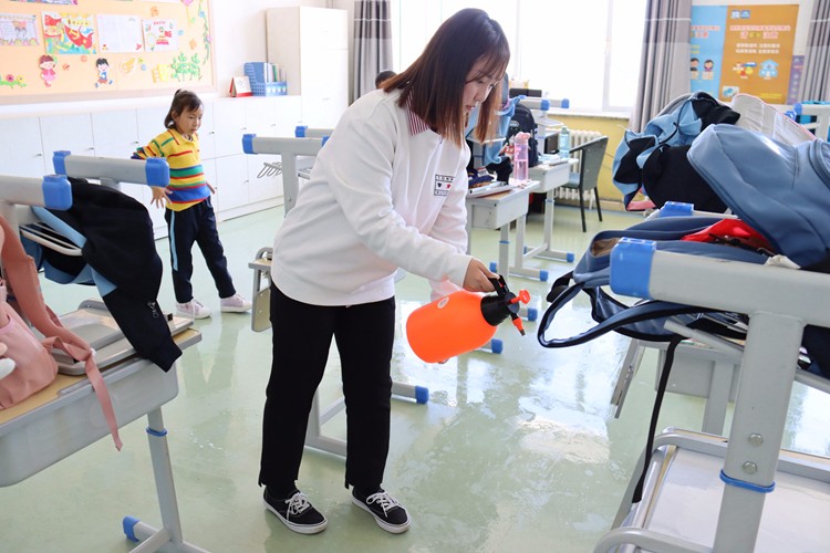 正所谓“防患于未然”,日常消杀工作依旧是巩固防疫成果的重要工作。根据工作要求,各个班级门口均配备了用语喷洒消毒液的喷水壶,以便各位班主任教师按时进行消毒水的喷洒工作,保证学生学习环境的安全。后勤组教师则按时进行校园内外环境的清洁工作与消杀工作,保证不留一处死角。