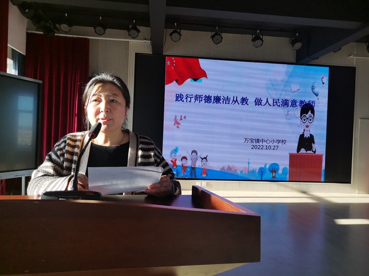 仪式上,万宝小学工会主席刘印详细的解读了师德师风内容,明确了教师职业的责任与任务,并向全体教师强调了师德师风的重要性。