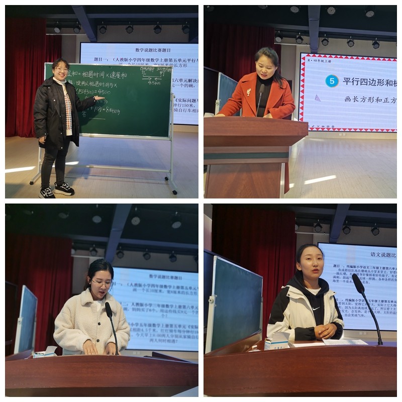 参加本次说题比赛共有8位教师参赛,分为语文组和数学组,选手们说题过程中教态落落大方,语言表达轻松流畅,层次分明、突出重点、解决难点;说题环节安排合理,环节紧凑,有严密的逻辑性,充分展现了不同教师在习题分析讲解的教学思路,同时也给在座的观摩教师们呈现出了一场思想内涵丰富的视听盛宴。