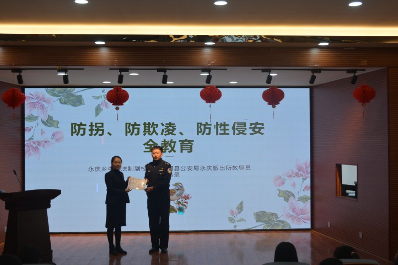 为进一步提升学生法制安全意识,提高未成年人自我保护能力,学校联合永庆乡派出所于20日课间开展了法制教育专题讲座。