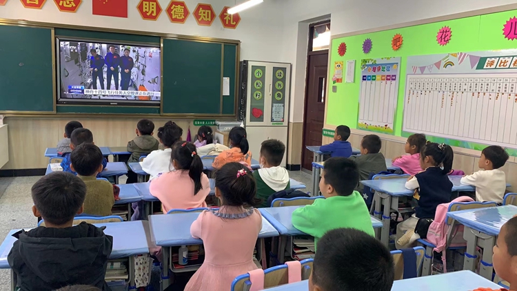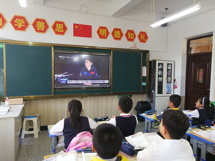 10月12日,安图县第二实验小学校组织师生收看了神舟十四号飞行乘组航天员陈冬、刘洋、蔡旭哲进行的太空授课。