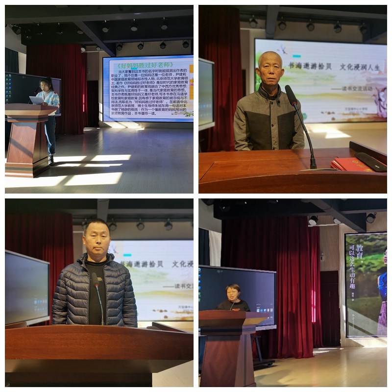 活动中,不同学科、不同年龄的老师分别介绍了不同书籍,结合自身工作经历和生*验,同时各位老师也踊跃发言,根据自己的教育教学实践,从不同角度畅谈读书的所思所想、所感所悟,畅谈体会,尽情分享着读书的收获与快乐。