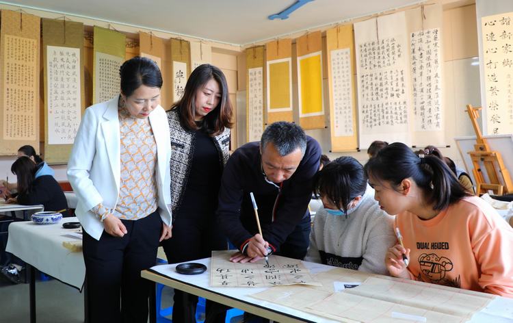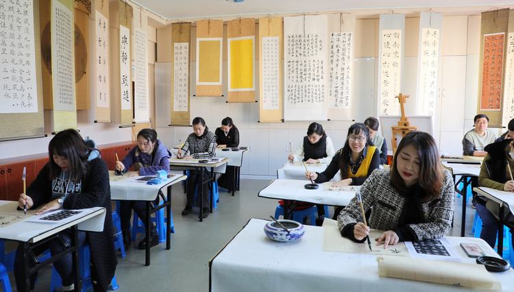 书法是人类文化宝库中一颗璀璨的明珠,为了提高教师的书写水平,学校专门开设了软笔书法社团.教职工书法社团根据教师的实际需求出发,组织老带新社团活动,年轻教师向老教师积极请教,老教师发挥特长进行教授。坐姿、立姿、执笔姿势每一个小细节,教师们都认真学习,校长佟晶也参与到社团活动中,与老师们共同感受书法的魅力,同时提高了书写水平。