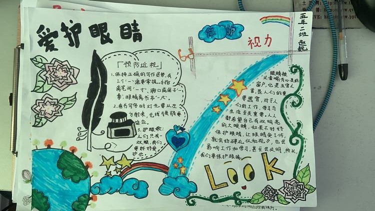 在通过多种途径及时有效地开展了形式多样、丰富多彩的宣传教育活动,在全校掀起了师生共同爱眼护眼的热潮。活动组织广大师生充分利用QQ、微信等形式宣传近视眼的危害以及科学的用眼方法,家校共同指导学生爱眼护眼,烘托爱眼气氛。在学校内给学生们上一节爱眼护眼课程,课程内容以《健康护眼》作为教学指导。号召全体师生和家长观看爱眼日网上视频讲座,学生制作爱眼护眼手抄报,让近视防护意识深入人心。