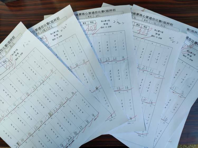 在选拔比赛活动现场,小选手们个个精神抖擞,坐姿端正,他们手中虽然没有算盘,但是只见他们指尖快速拨弄着心中的无形算盘,紧张有序地快速计算着。监考老师尽职尽责,严格把控时间节点和考场纪律,整场比赛井然有序。最终有十名小选手在紧张激烈的选拔赛中脱颖而出,代表学校参加第30届海峡两岸珠算珠心算通信比赛。