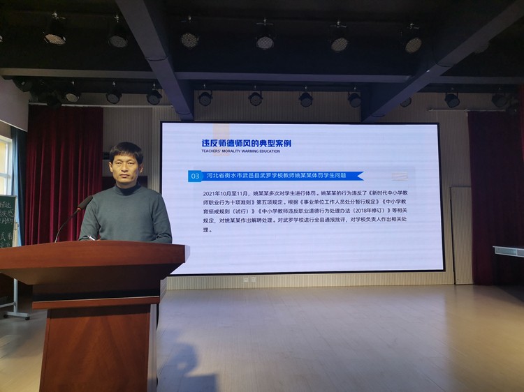 培训最后,通过案例分析做总结,教师是立校之本,师德为教育之魂。并号召教职工们守师德初心,绽师风之美,不仅要教导学生知识技能,还要传达做人的道理,把“经师”与“人师”结合,学高为师,身正为范,做学生们人生的领航员。