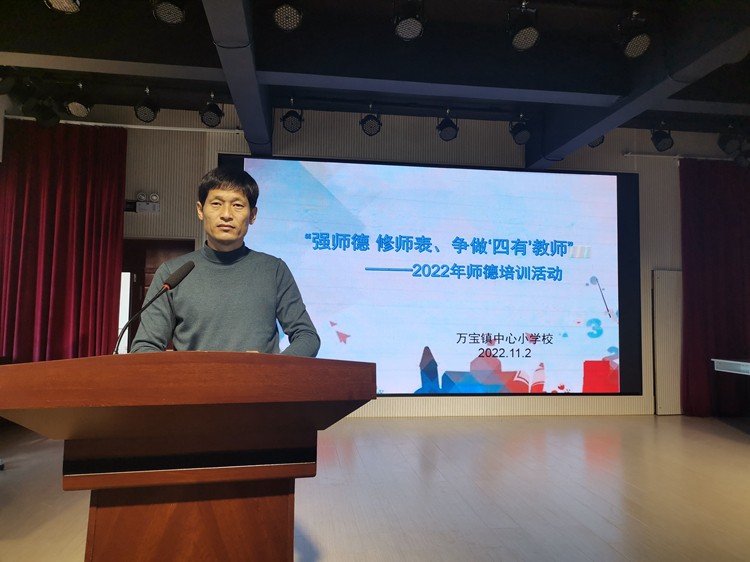 教师是立校之本,师德是教育之魂,要达到高质量的教育,必须要有高素质的教师。为了进一步提升全体教师职业道德水平,塑造良好的师德师风形象,弘扬校园新风正气,2022年11月2日上午,万宝小学开展“强师德 修师表、争做‘四有’教师”师德培训活动。