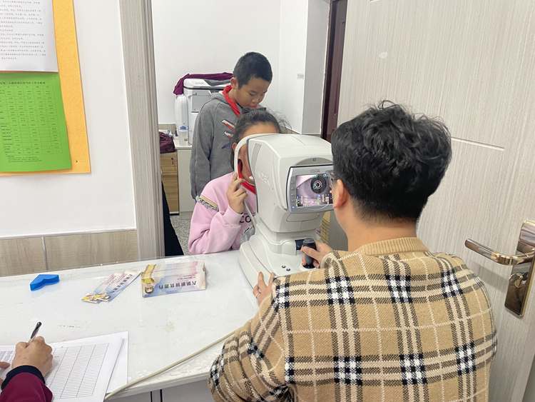 为确保有秩序地完成检测任务,在学校组织下,学生分批次,分时段,按顺序依次检测。“别紧张!身体保持平衡,眼睛看向仪器这边。”在检测过程中,医生使用专业仪器,认真、细致地检查,对每位学生的视力情况进行了详细记录。检测后,校医将对每个学生的视力检测情况进行登记,完善了学生近视筛查档案,并及时告知家长学生视力情况,加强对近视防控宣传教育,进一步强化学生手机、作业、睡眠、读物、体质的五项管理,加强学生近视防控。
