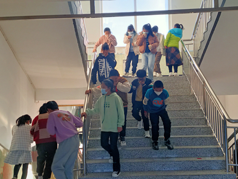 为了实施好这次演练,学校制定了详细的消防疏散演练方案,对各班逃离的路线及每位配班老师的职责、每层楼梯口的值班老师等内容都作了明确的规定。演练开始前,各班主任给学生介绍了简单的逃生注意事项和方法。13时40分,随着警报的响起,学校应急疏散演练指挥部总指挥下达了“教学楼发生火灾,请同学们立即撤离”的命令,紧接着,全校各班主任老师迅速到达各班协助上课老师一起组织学生疏散,其他老师们也在第一时间赶到自己当时所在楼层拐角处配合疏散学生。各班学生在老师们的指挥下,弯着腰,猫着步,用手帕、毛巾等捂住口鼻,沿着学校指定路线快速前进,有序撤离到学校操场的安全地带,耗时1分35秒,随着各班班主任清点人数,并进行上报,全校200余名师生全部安全疏散完毕。随后,安全主任孔令哲对此次消防应急疏散演练活动进行了总结,表扬了在演练活动中做得好的班级,并强调一旦身边发生突发事件,要沉着应对,做好及时报告和安全逃生工作,有效掌握在危险环境中迅速逃生、自救、互救的基本方法,切实提高抵御和应对紧急突发事件的能力。