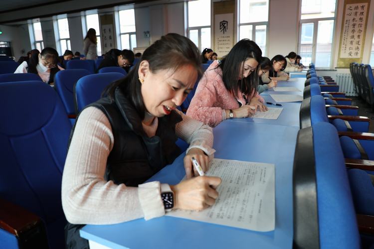本次考试实行单人单桌,统一出题,闭卷考试。测试开始前,校长佟晶向全体教师宣读考试规则。希望全体教师在考试过程中遵守考试纪律,诚信考试。考场上老师们仔细思考,认真答题,整个考试过程考场纪律严明,庄重肃静,确保了考试的公平、公正。考试结束后,学校师德师风领导小组组织专人对试卷进行认真批阅,通过认真评改试卷,此次师德师风考试全部合格。