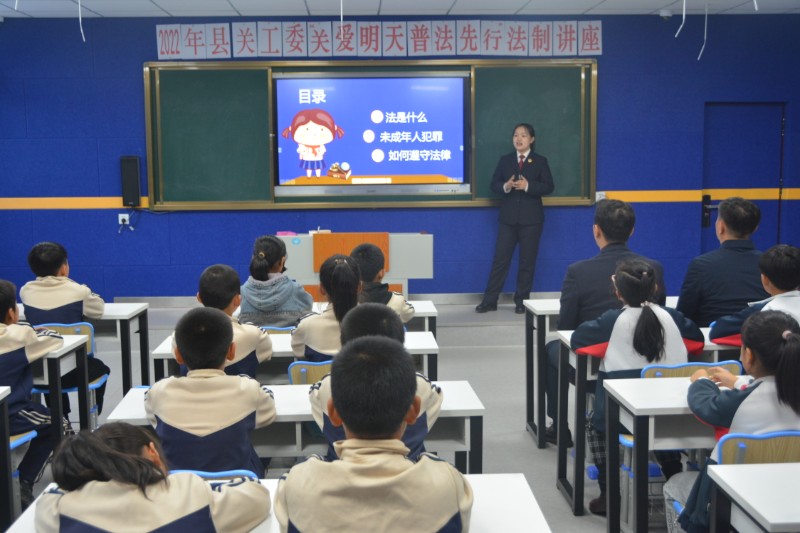 为进一步加强未成年人法治教育,净化青少年成长环境,全面提高青少年法治素养,有效预防青少年违法犯罪。近日,安图县关工委来到永庆中学学校开展了“关爱明天 普法先行”法制讲座活动。