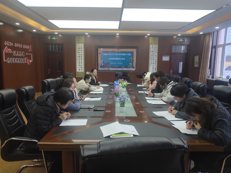 为进一步提高教学质量,强化教学管理,在反思中发现问题、总结问题、解决问题,更好的开展教育教学工作,近日,安图三中分别召开了七、八、九学年的阶段教学分析会。