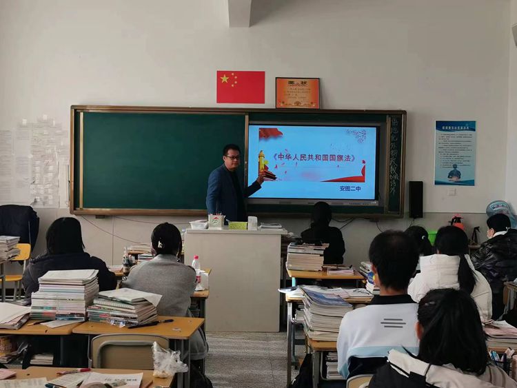 为弘扬爱国主义精神,加深学生对国旗和《国旗法》的了解,提高广大学生的国旗保护意识和国家观念,11月8日,安图县第二中学开展学习《国旗法》主题班会活动。