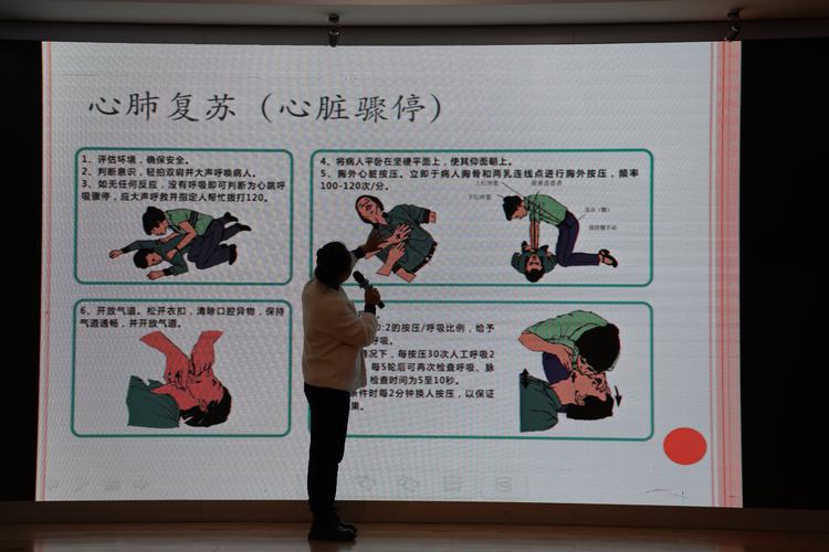 培训共分为理论教学和实践操作两个部分。首先校医室敖欣向老师们讲述了心肺复苏术的基本原理,了解到呼吸骤停黄金救援时间4分钟的重要性,演练了急救员在应急救援现场的基本步骤。随后敖欣生动的实例讲授了心肺复苏、气道异物阻塞、创伤救护等课程,并向老师们演示了心肺复苏术、人工呼吸法、“海姆立克”急救法、绷带包扎等紧急救护技术。最后,敖欣给老师出了考题:不同突发情况的处理。老师们通过讨论结合实际经验,给出了应对策略。敖欣结合老师的操作给出了合理正确方案的指导。