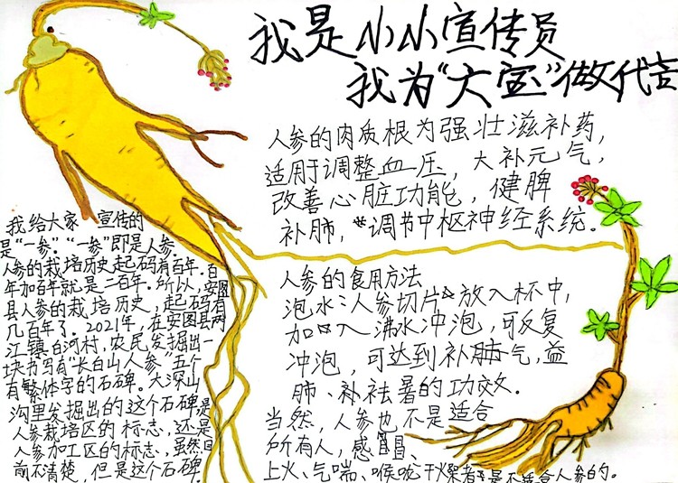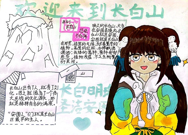 活动由三中政教处组织发起,各班学生积极参与,纷纷行动起来。通过上网检索、询问家长、查阅资料等多种渠道了解安图文化,了解安图六宝,并用⽂字、图⽚和视频等形式向大家介绍安图六宝,让大家知道安图六宝是大自然的馈赠,安图县的精华,安图人的福分。学生们的行动,在增强自己文化底蕴的同时,也为家乡的发展贡献了自己的⼀份⼒量!