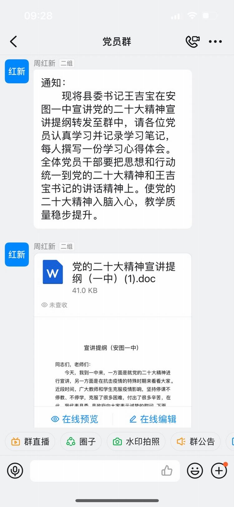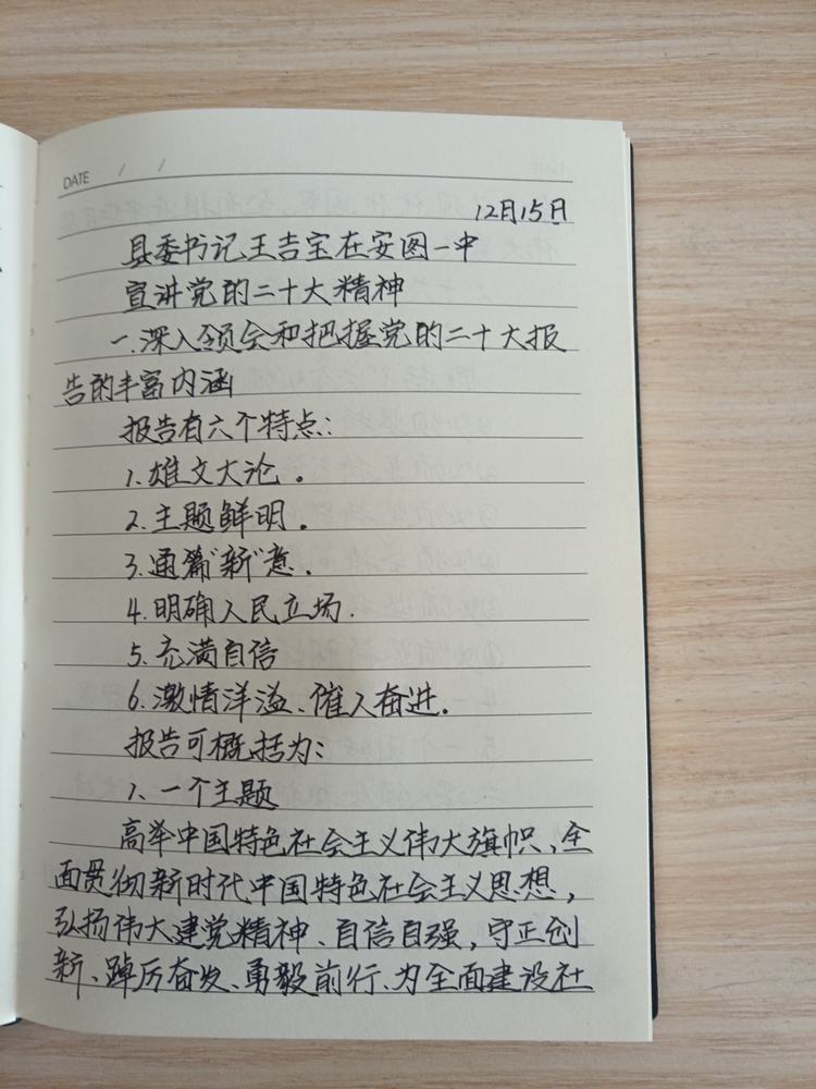 为使党的二十大精神入脑入心,扎实担当起学习、宣传、贯彻党的二十大精神的光荣使命,营造浓厚的学习氛围,王德泰红军小学组织全体党员学习县委书记王吉宝在安图一中宣讲党的二十大精神。