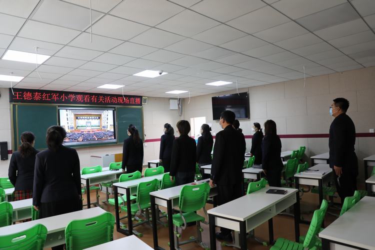 王德泰红军小学全体师生怀着崇敬的心情,观看江泽民同志追悼大会,学校下半旗致哀,全体师生默哀三分钟。在习近平总书记致哀悼词时,师生纷纷红了眼眶,师生感激顽强奋斗的革命先辈,铸就了永不褪色的精神丰碑。师生们立下志向,立志做一名爱祖国、爱家乡、爱学校、爱家庭的社会主义建设者和接班人,也将为中华民族的伟大复兴时刻准备着。