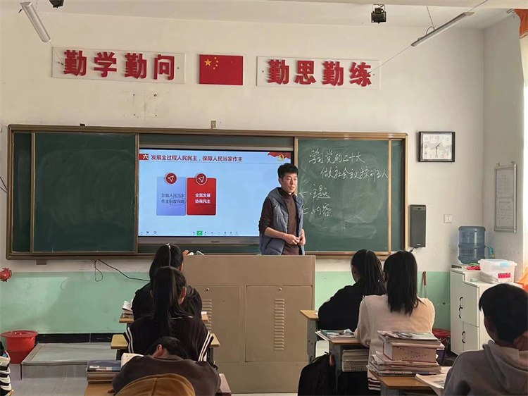 青年强,则国家强,为了学习贯彻党的二十大精神,安图县三道中学在11月25日,由教导处组织陈艳军老师上了一节《学习党的二十大 做社会主义接班人》道德与法治课。
