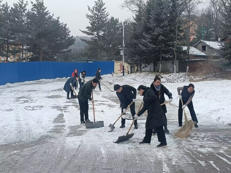 此次除雪,学校领导“以身作则、率先垂范”,他们走在前、干在前。尽管任务重,面积广,但全体教师不惧严寒,挥起铁锹、雪铲参加义务除雪活动,大家破冰除雪,前边铲,后边扫,争先恐后,齐心协力,身虽在寒冬心却是暖春,老师们忙碌的身影构成了校园内一道亮丽的风景线。
