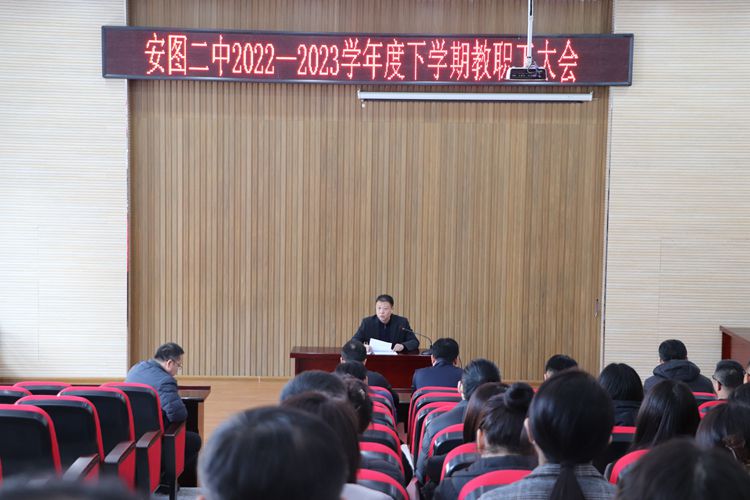 新学期新征程任重道远,新思路新发展阔步向前。为深入学习与贯彻各级教育工作会议精神,全面落实党的教育方针,确保新学期学校工作开好头、起好步,安图县第二中学于2月24日下午,召开2022-2023学年度下学期全体教职工大会。
