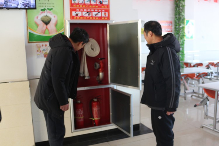 安全检查小组首先进入校园微型消防站,对设施设备进行了安全检查,重点核对消防设施有无损坏缺少,以及灭火器是否过期。随后安全检查小组对食堂及周边进行安全排查,检查食堂内灭火器是否过期,线路是否存在安全隐患。