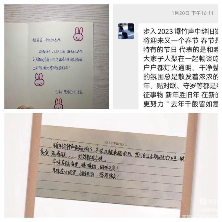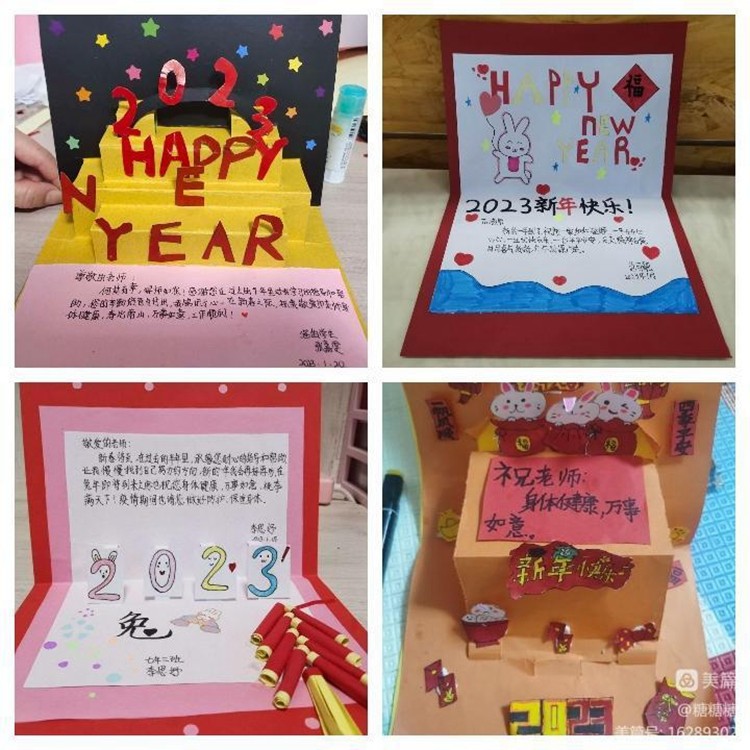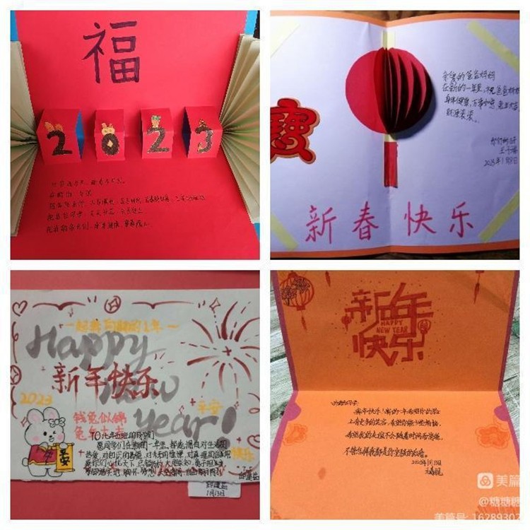 同学们纷纷表示活动的开展为自己提供了一个很好的展示自我、锻炼自我的平台。通过新年贺卡的制作不仅展示了自己的创作才能,锻炼和培养了自己的动手才能,更重要的是感受到新年的氛围及意义,通过对老师、家人、朋友及自己的祝福,促进人与人之间的交流和感情!
