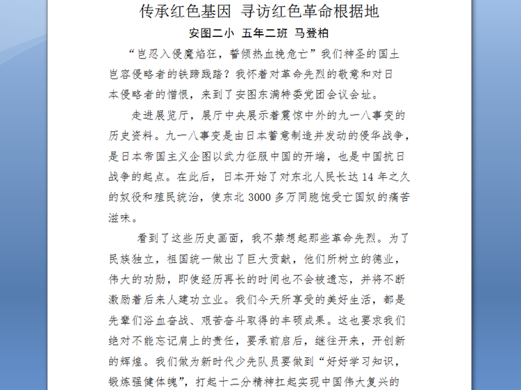 为深入挖掘安图历史的文化内涵与时代价值,展示家乡深厚的红色文化底蕴,使学生从中真实地感受历史,激发爱国主义和民族主义情感。寒假期间,安图县第二实验小学校组织学生开展了“互联网红色研学 打卡红色革命根据地”活动。