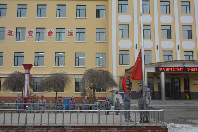 仪式开始前,政教处的辅导员老师用手机播放音乐,带领着同学们一遍遍重复练习着,以求接下来的圆满完美。迎着朝阳,全体师生肃立在国旗下,伴随着庄严嘹亮的国歌,鲜艳的五星红旗冉冉升起,在晨光中献上对祖国最深切的祝福。仪式上,五年二班的同学国旗下演讲用动听的话语呼吁全体师生学习雷锋精神,争做时代少年。