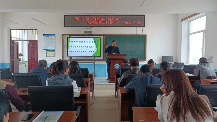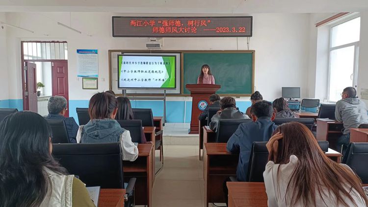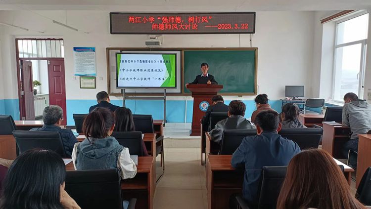 “德高为师,身正为范”,要想把学生培养成什么样的人,自己首先就应该是什么样的人。所以,作为教师,“德”应是教书育人的先决条件之最。为了进一步贯彻落实《新时代中小学教师职业行为十项准则》和《中小学教师职业道德规范》,3月22日,两江小学开展了“强师德,树行风”的师德师风讨论活动。本次活动由工会主席仲玲玲主持。
