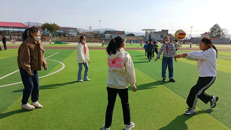每天一到大课间活动时间,全校15个班级的同学在班主任老师的带领下,有序地站在各班规划好的区域内,并根据自选活动内容进行活动。每个班级的活动都不尽相同,做到了“一班一品”。操场上有的同学在跳绳,有的围成一圈进行排球传球练习,有的在摇大绳儿,有的在练习空竹......同学们尽情地享受着大课间活动的乐趣,校园里处处留下了孩子们的欢声笑语。同时,学校还号召老师们也参与到大课间的活动中来,在篮球场、排球场上,老师们也在尽情地运动着,利用大课间进行体育锻炼,保证良好的精神状态更好地投入到工作中去。