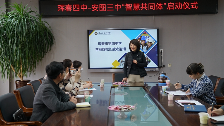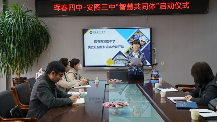 为加强延边州内校际间的合作交流,实现“互联网+教育”优势互补和资源共享,2023年3月10日,在延边州电教馆及安图县教育局信息中心的大力支持下,安图县第三中学与珲春市第四中学“智慧共同体”启动仪式如期举行。安图县第三中学和珲春市第四中学的校长、副校长、教导主任及主管电教工作的相关人员参加了本次活动。
