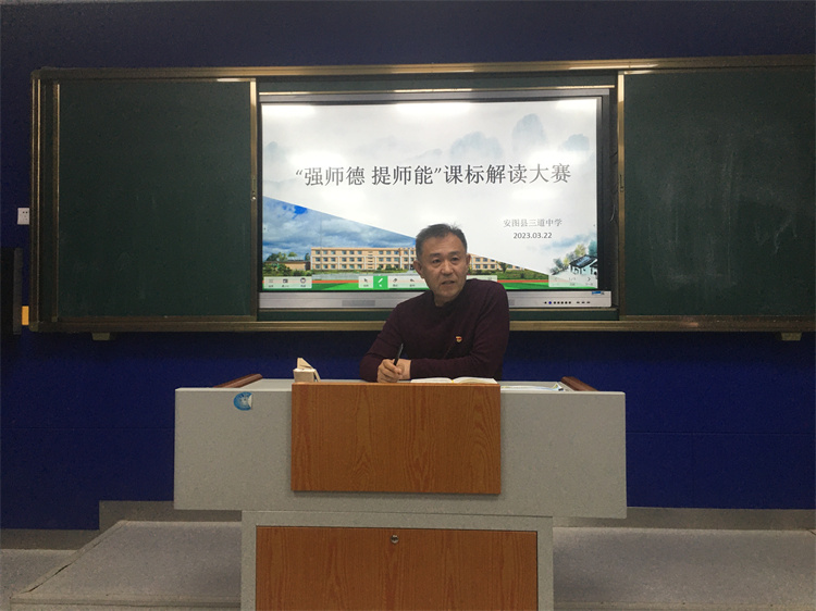 3月23日,安图县三道中学举办了“强师德,提师能”课标解读大赛。按照《三道中学2023年度学校工作计划》安排,本次活动是“强师德,提师能”系列主题活动的首个竞赛,对提高教师对新课标(核心素养)教学理念的学习理解和教学实践运用有重要意义。