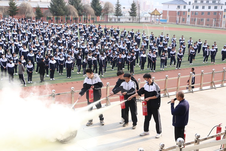 随后,学校还组织同学们在操场上上了一节生动的灭火知识课,由舍务主任张作涛老师负责讲解灭火器的使用方法,在后勤老师的配合下各班派代表亲自体验了使用灭火器灭火的全过程。