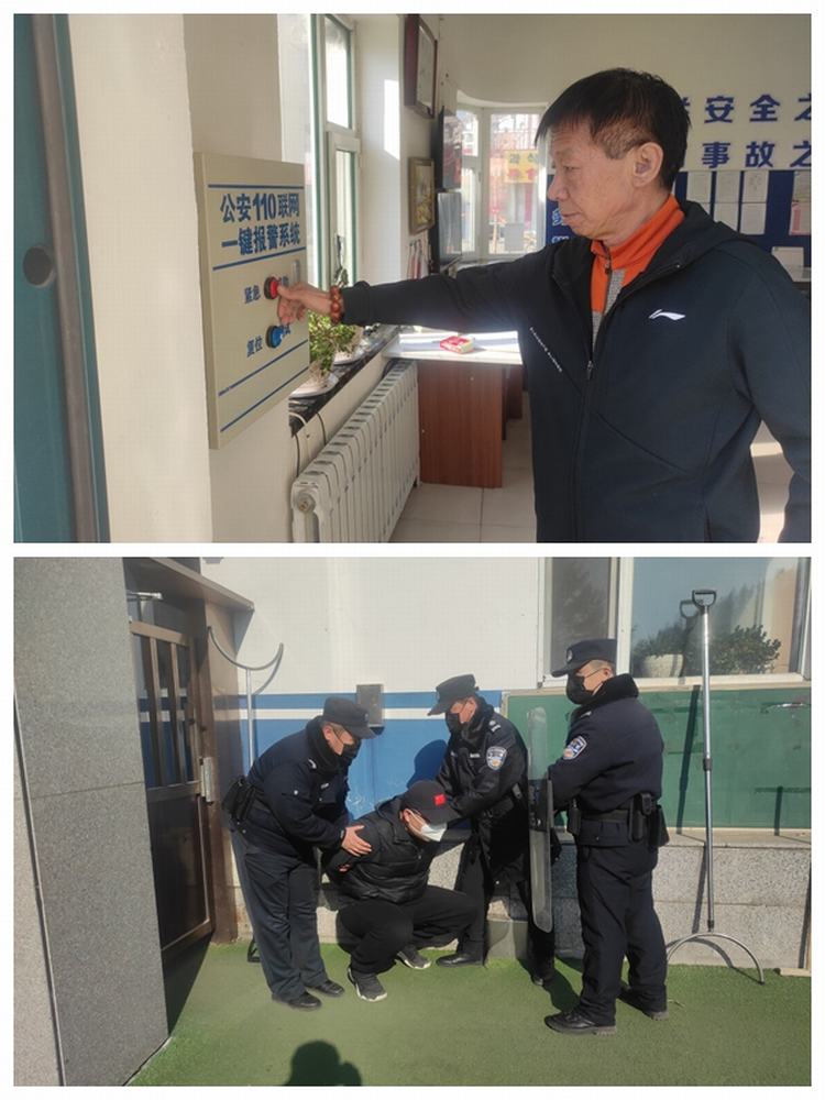 为了确保防暴演练的实效性,演练前学校制定了详细的演练计划,要求全体参加人员按照预定程序开展演练。首先由学校老师扮演的“歹徒”,在课间操时持棍棒突然闯入学校,学校保安人员发现后一边立即采取行动进行制止,一边及时拉报警铃,总指挥陈莹通知校园应急救援队成员,拿上相关工具去抓捕持棍“歹徒”,采取有针对性防暴力事件的各种措施,迅速拨打“110” 报警装置并通知领导。领导第一时间通过学校广播通知师生快速回到教室关好门窗,用课桌顶着前后门防止“歹徒”破门而入。最后“歹徒”在校警、教师的齐心协力下被成功制伏。演练进行得十分顺利。