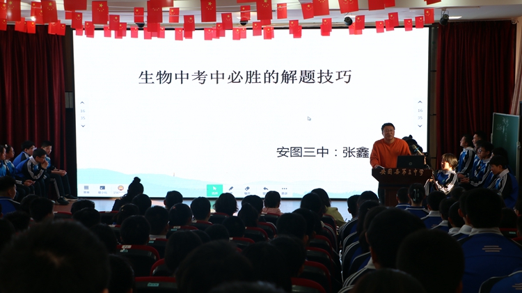 为了营造良好的地生中考学习氛围,进一步激发同学们的备考斗志,引导同学们顽强拼搏、勇敢超越。2023年4月3日,安图三中在四楼大会议室召开“百日竞渡 决胜地生”八学年地生中考动员大会,擂响地生中考冲刺的战鼓。